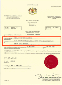 赤枠で囲われた部分の商標と住所が、弊社サイトの運営者情報と一致していることをご確認ください。